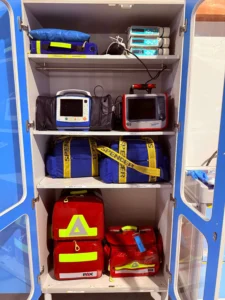Ogni velivolo è equipaggiato con presidi elettromedicali di ultima generazione, monitor multiparametrici, ventilatori, defibrillatori, pompe a infusione, incubatrici neonatali e tutti i dispositivi necessari per la gestione di pazienti critici, infettivi o in terapia intensiva.